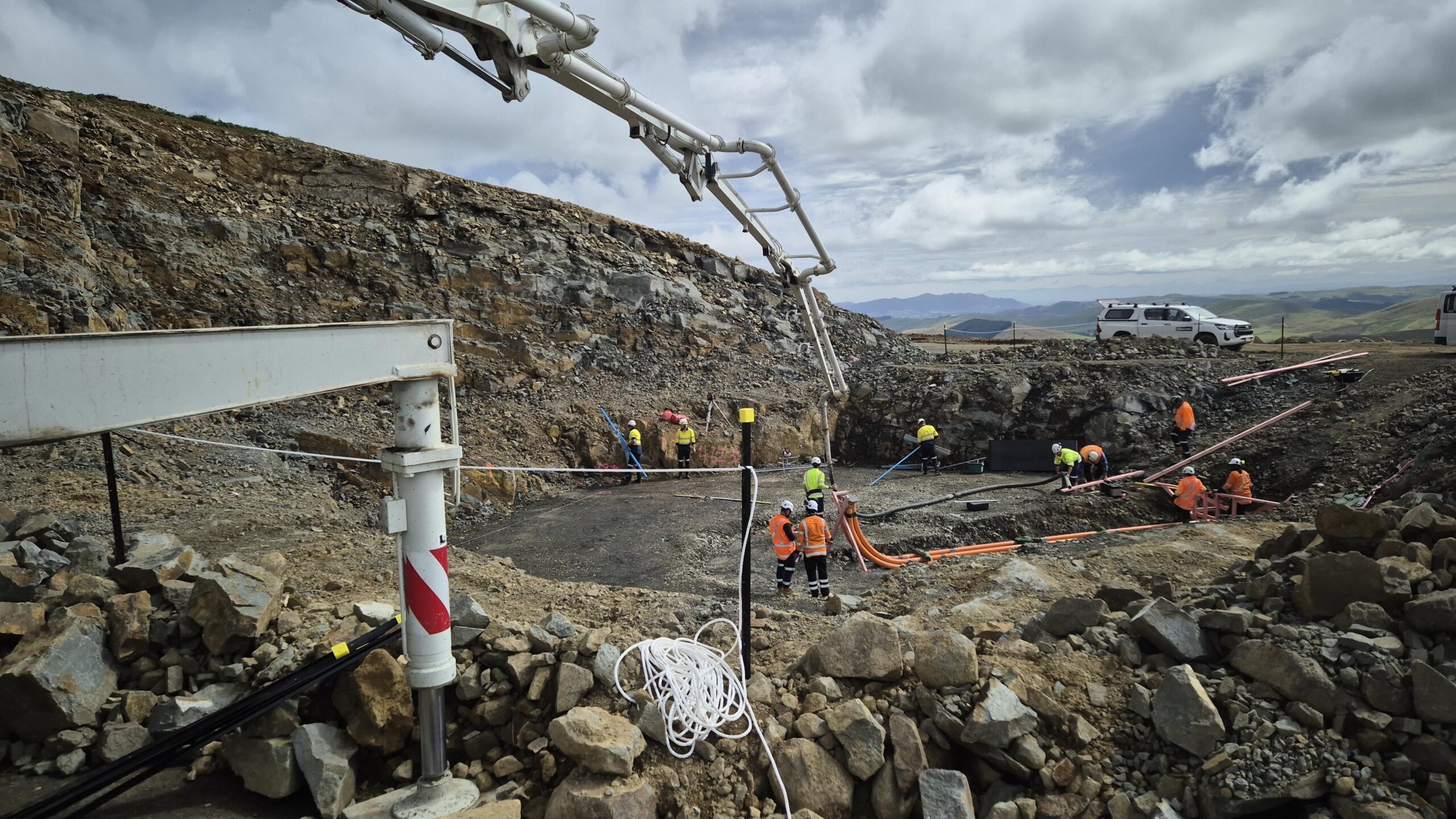 First pour at Kaiwera. There are 32 Towers going up and over 16,500m3 of concrete to be poured. This the 27m Sermac pump soon to been joined by the larger 37m Sermac that will handle most of the bigger pours. Pouring look to be finish around Dec 25 all going to plan.